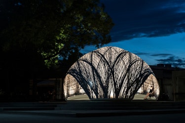 Like our infatuation with diamonds as the "hardest substance on Earth," our fascination with silk, a naturally occurring material, never seems to fade. The super-fine substance is stronger than steel weight for weight, yet it is also extremely flexible. Scientists have long attempted to synthetically build the substance (in order to give the humble silkworm a rest), but have made little headway. However, a team from the MIT Media Lab has discovered a technique to manage silkworms to do their bidding in order to make a silk pavilion — essentially, printing with worms.